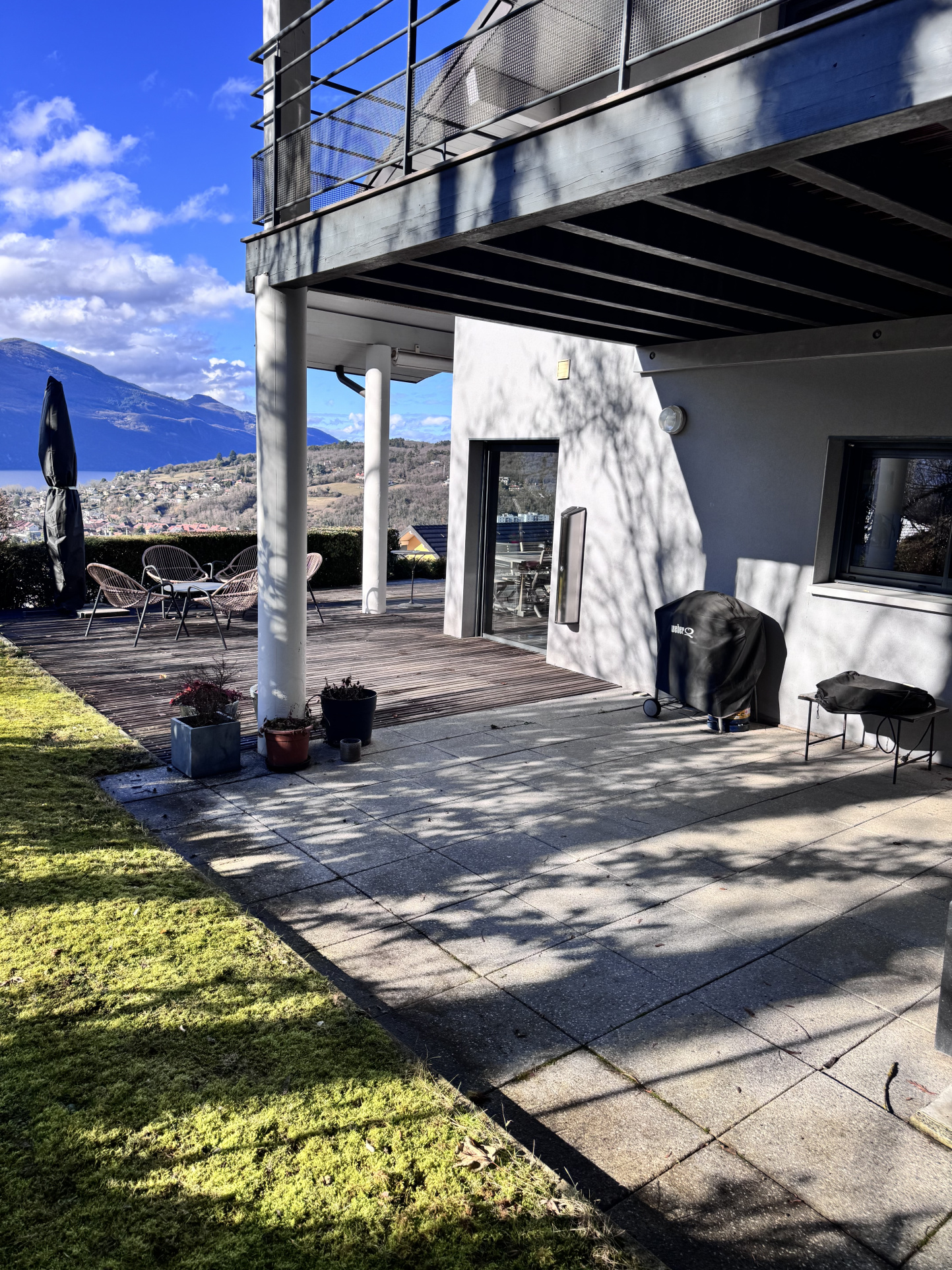 Située première hauteur d'Aix les Bains en position dominante, au cœur d’un environnement résidentiel discret et très prisé, cette propriété contemporaine développe environ 185 m² habitables et 295m² au sol et offre une vue panoramique exceptionnelle sur le lac du Bourget et les reliefs alpins.